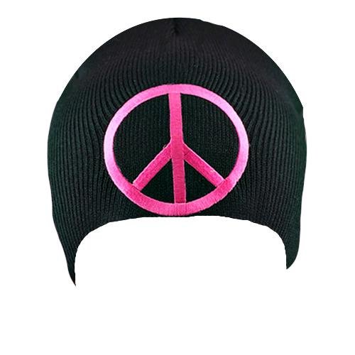 Pink Peace Sign On Black Tight Knit Beanie Cap Hat Review